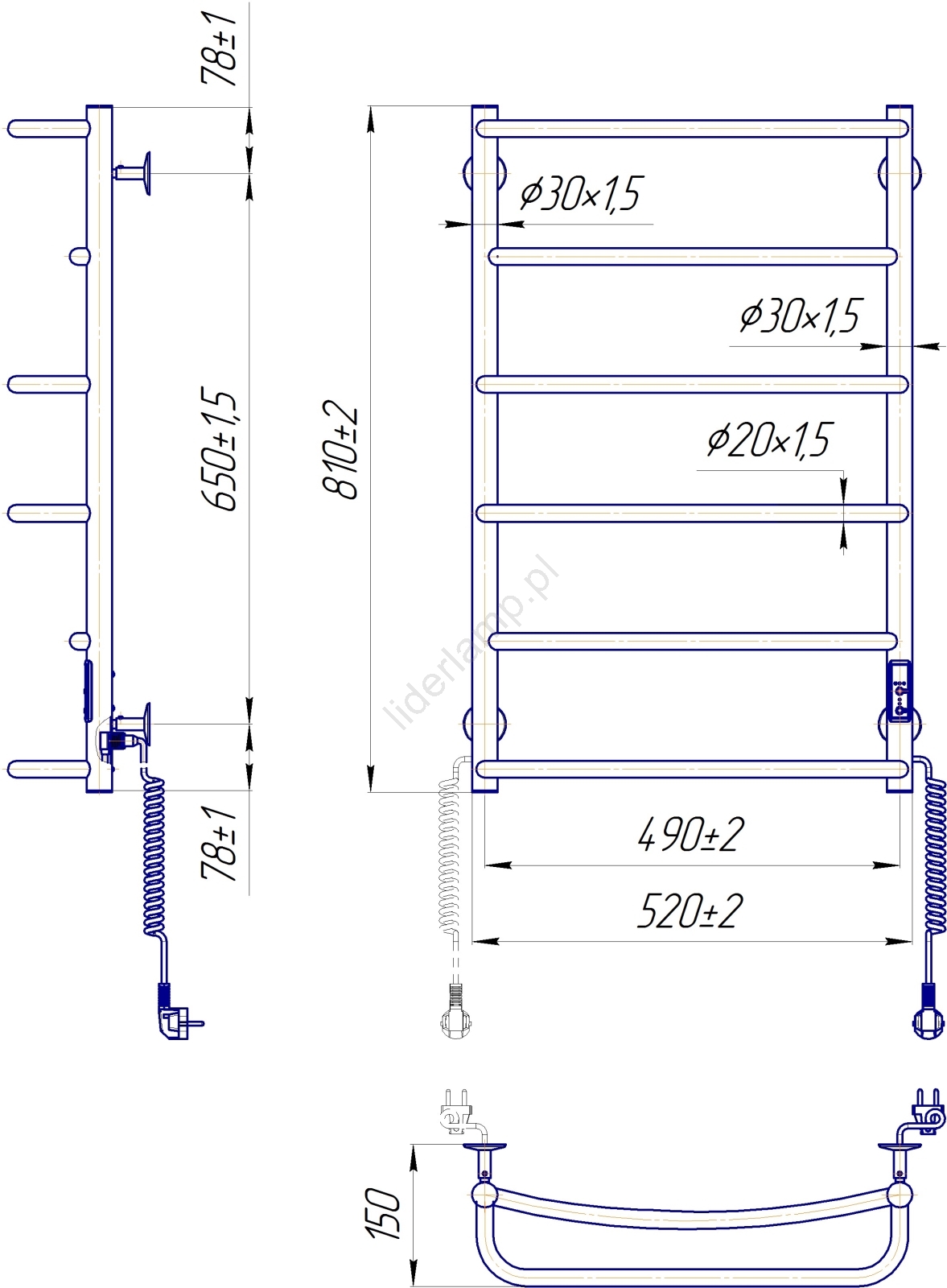 ReviewsWidget_ReviewsAboutUs Drabinkowy grzejnik łazienkowy LUX 105W/230V 81x52 cm stal nierdzewna/czarny prawy | Liderlamp.pl