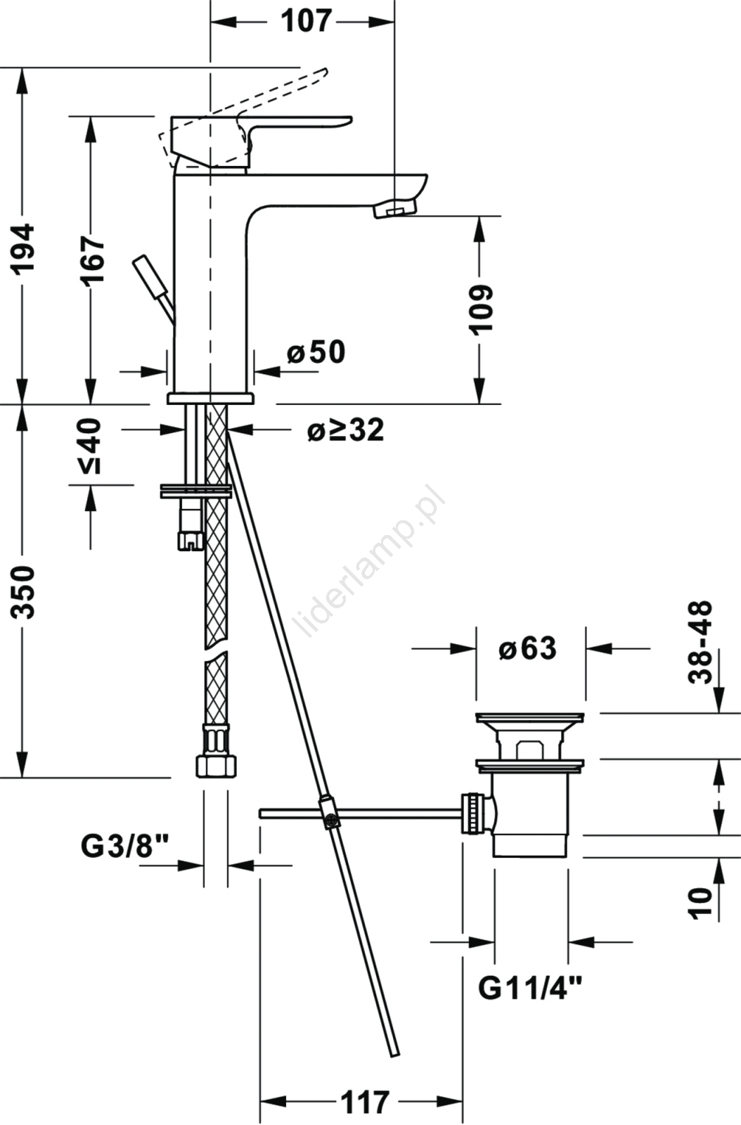 • W zestawie znajduje się korek spustowy z mechanizmem.