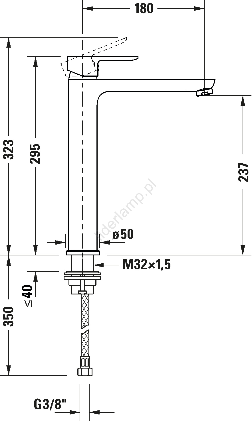 • Bateria umywalkowa jednouchwytowa jest zaprojektowana do montażu stojącego na umywalce w wykonaniu jednootworowym.