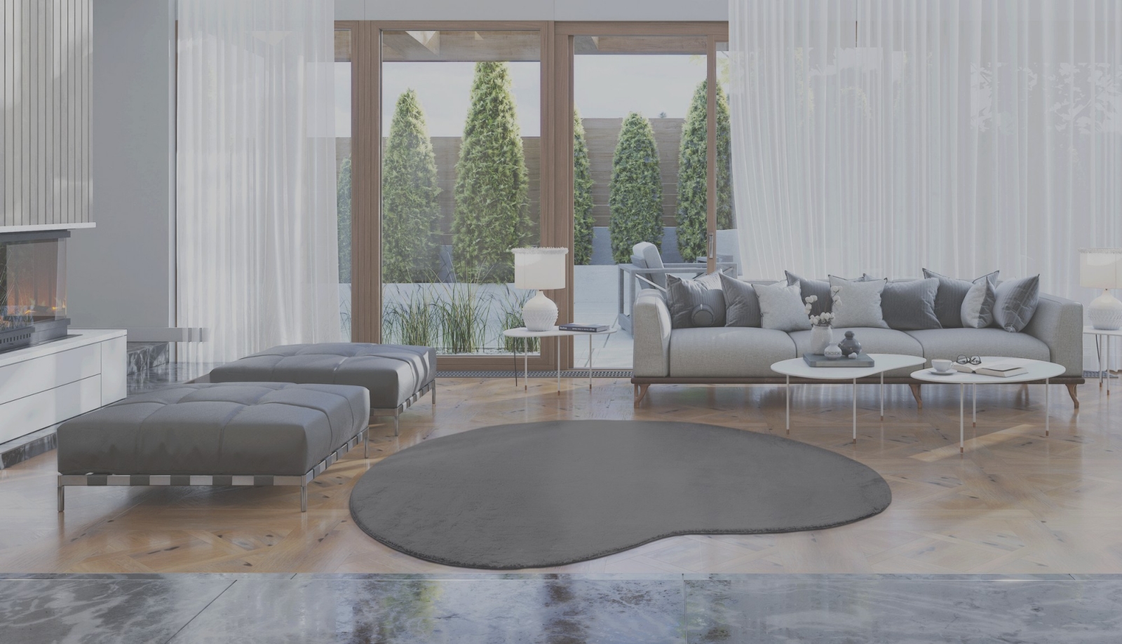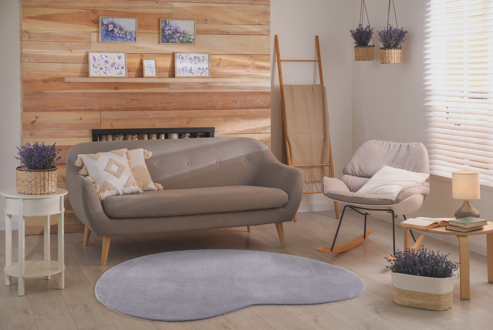 • Elegancki dywan w kształcie fasoli.