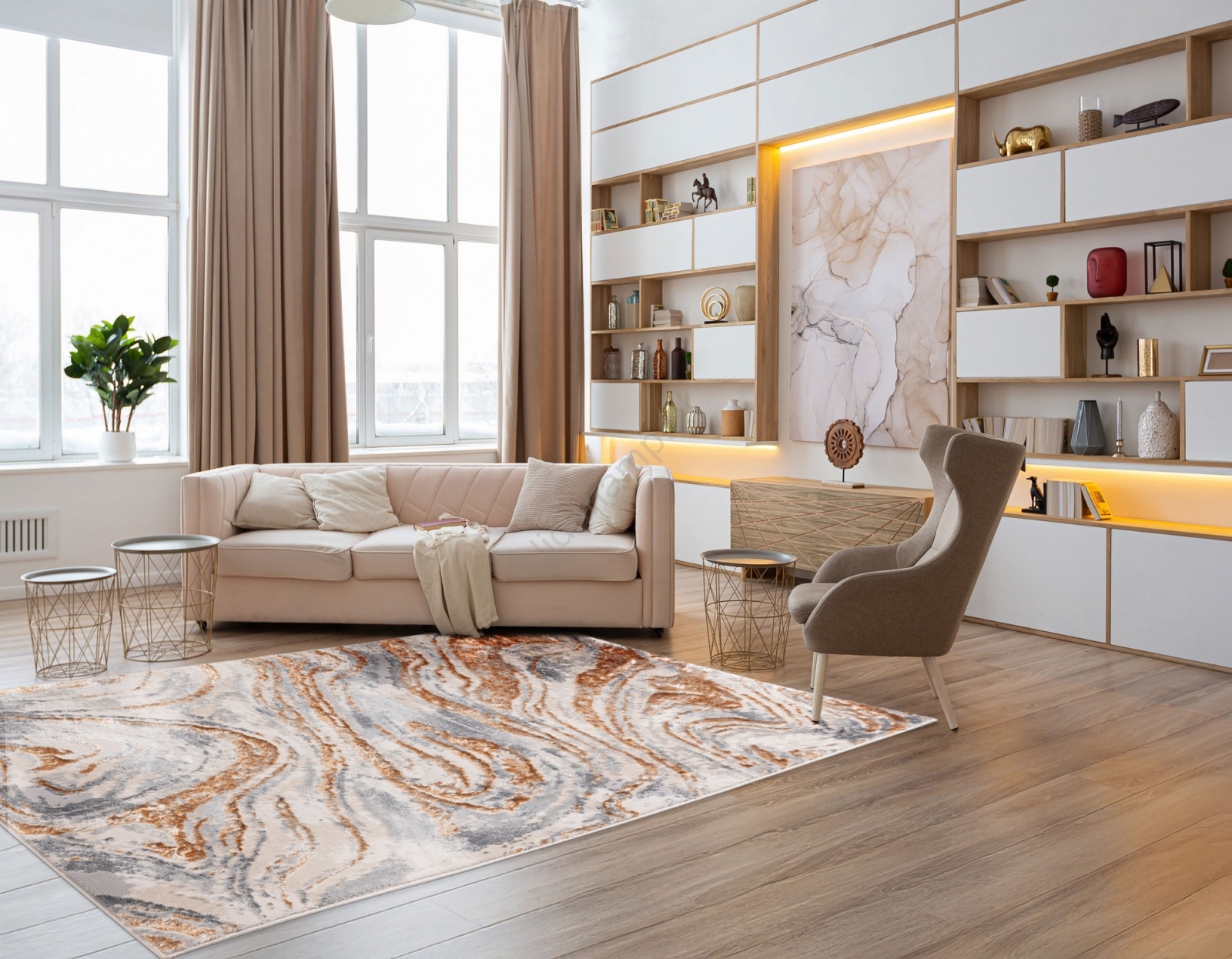 • Estetyczny i nowoczesny dywan o subtelnych, abstrakcyjnych wzorach.