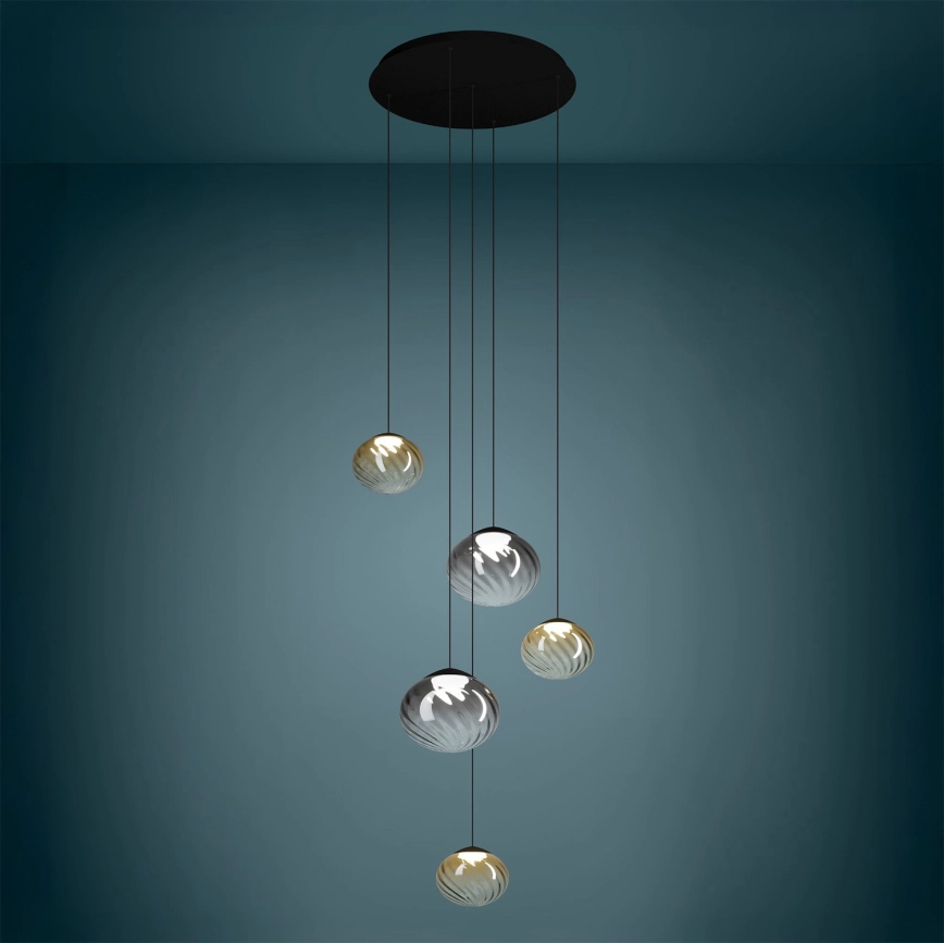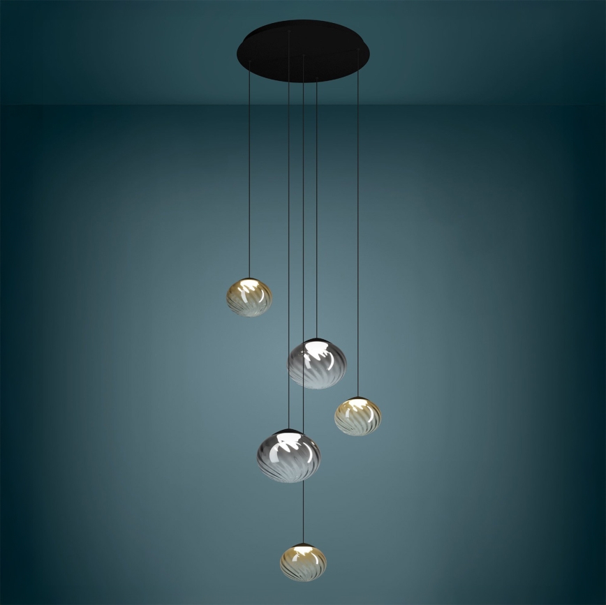 Eglo - LED ściemnialny żyrandol wiszący na linkach 5xLED/5,8W/230V 2200-6500K czarny/beżowy/przydymiony + pilot zdalnego sterowania