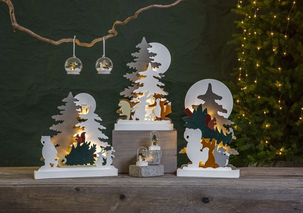 • Zestaw 2× LED drewnianych ozdób świątecznych z laserem.