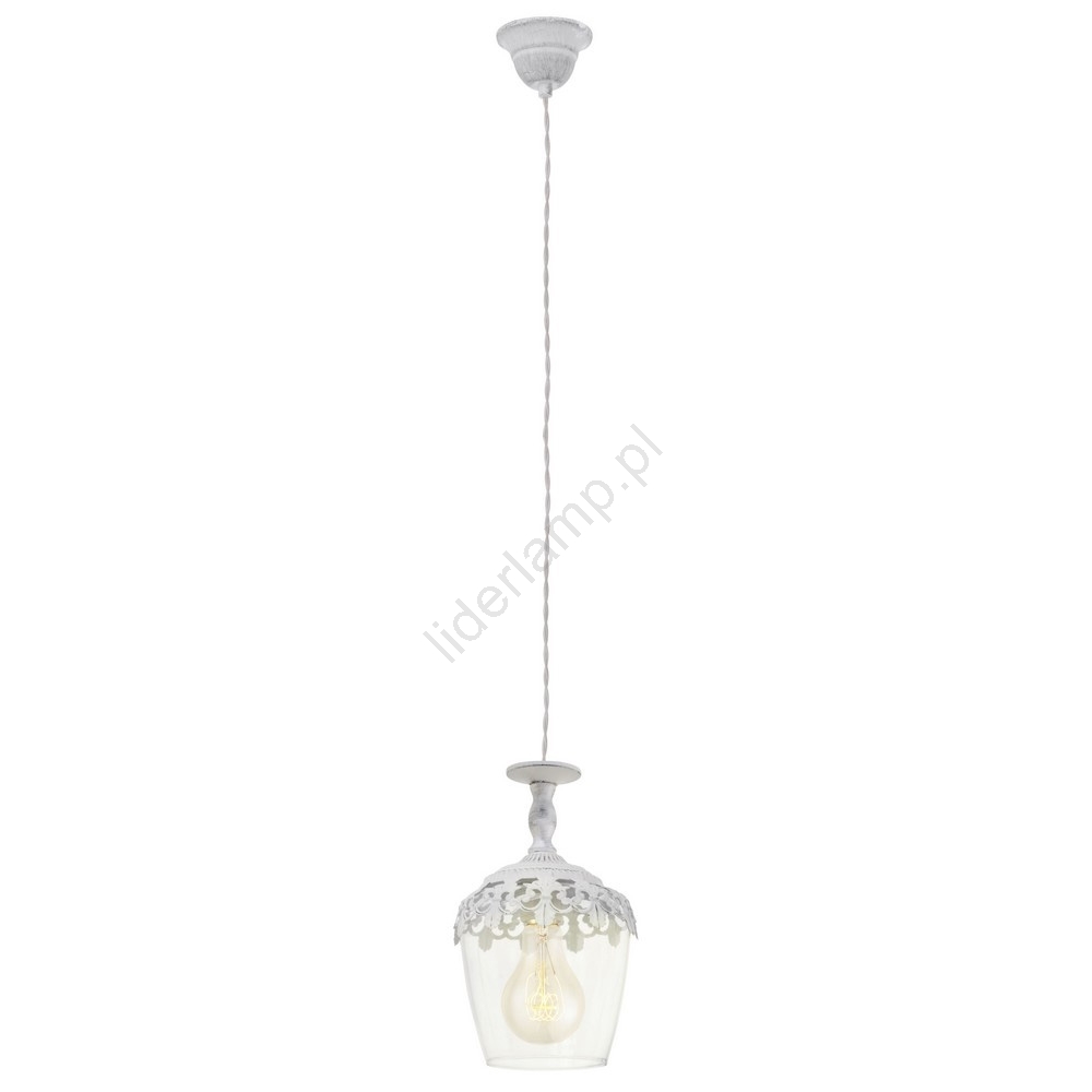 • Klosz z przezroczystego szkła jest umocowany w konstrukcji z białego metalu.