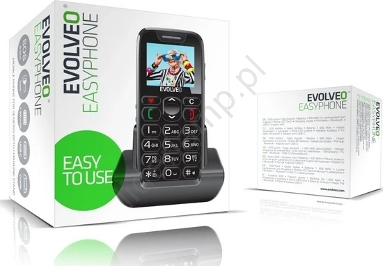 Evolveo - EasyPhone, telefon komórkowy dla seniorów, czarny