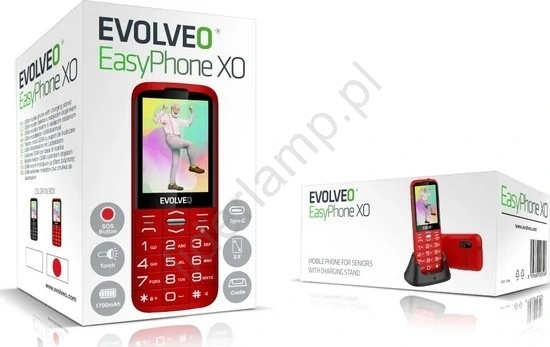 Evolveo - EasyPhone XO, telefon komórkowy dla seniorów, czerwony