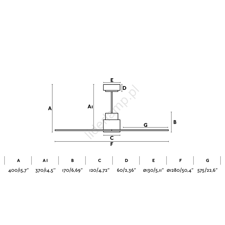 • Nowoczesny wentylator sufitowy o średnicy 128 cm.