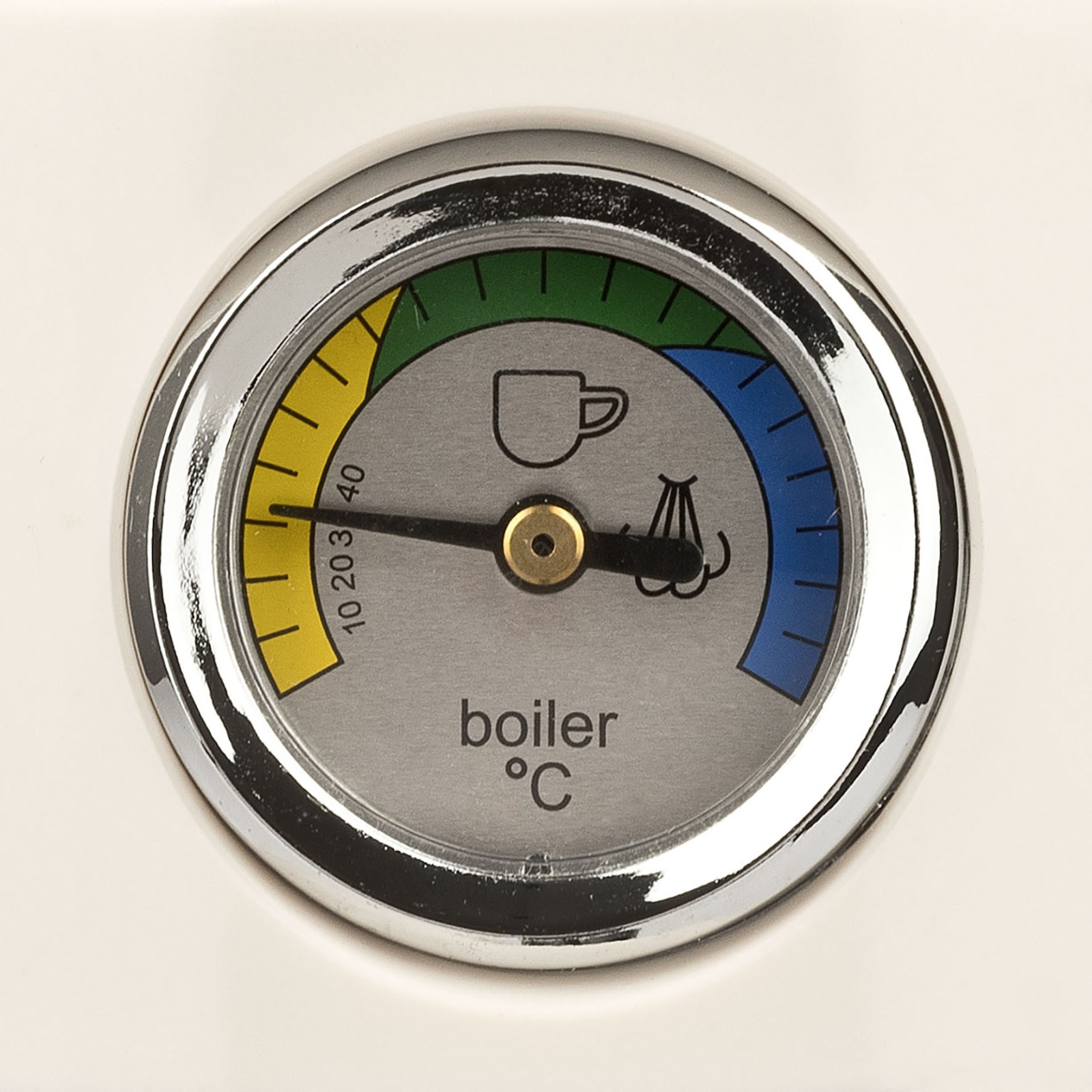 • Profesjonalna pompa ULKA o ciśnieniu 15 barów oraz analogowy termometr zapewniają precyzyjną kontrolę ekstrakcji.