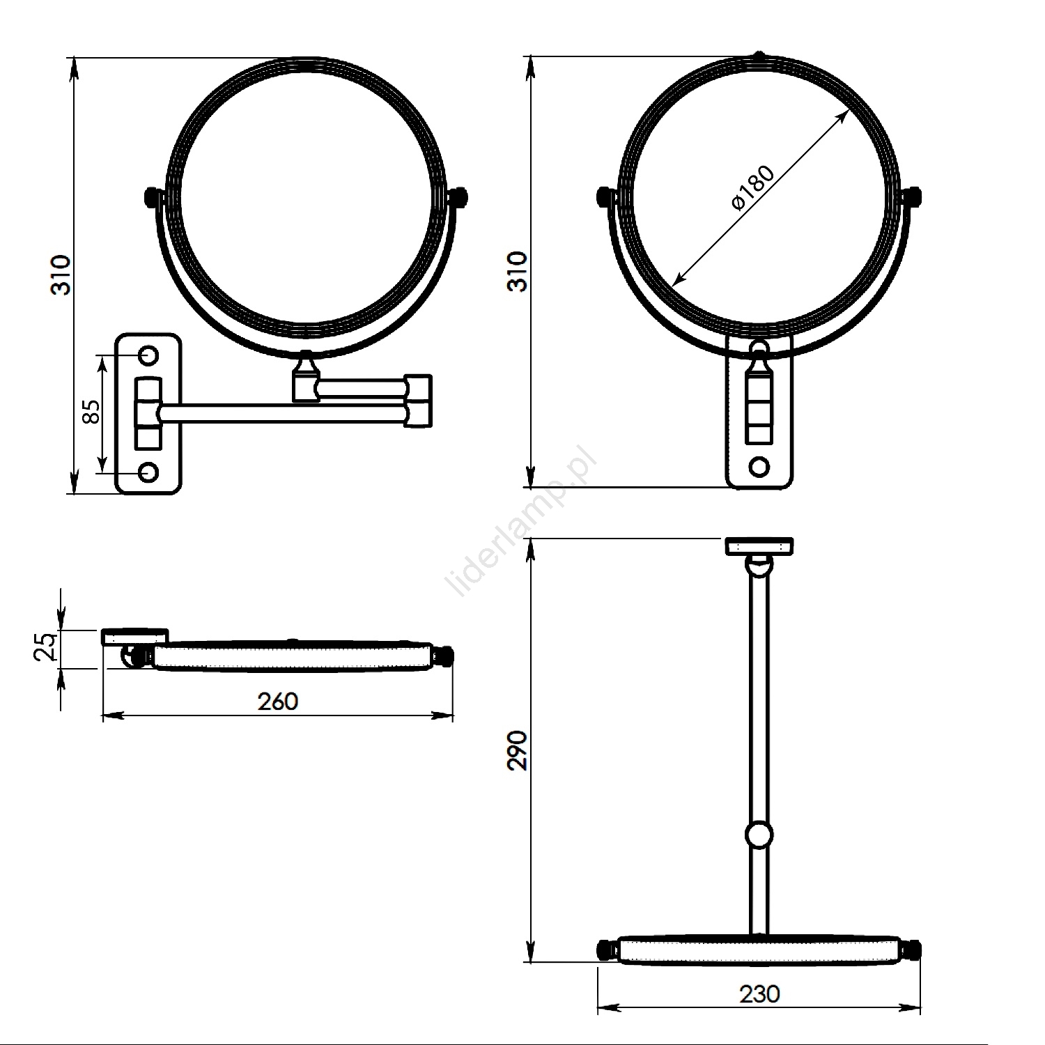 • Konstrukcja wyposażona w ruchome ramię umożliwia wygodne ustawienie lustra według potrzeb.