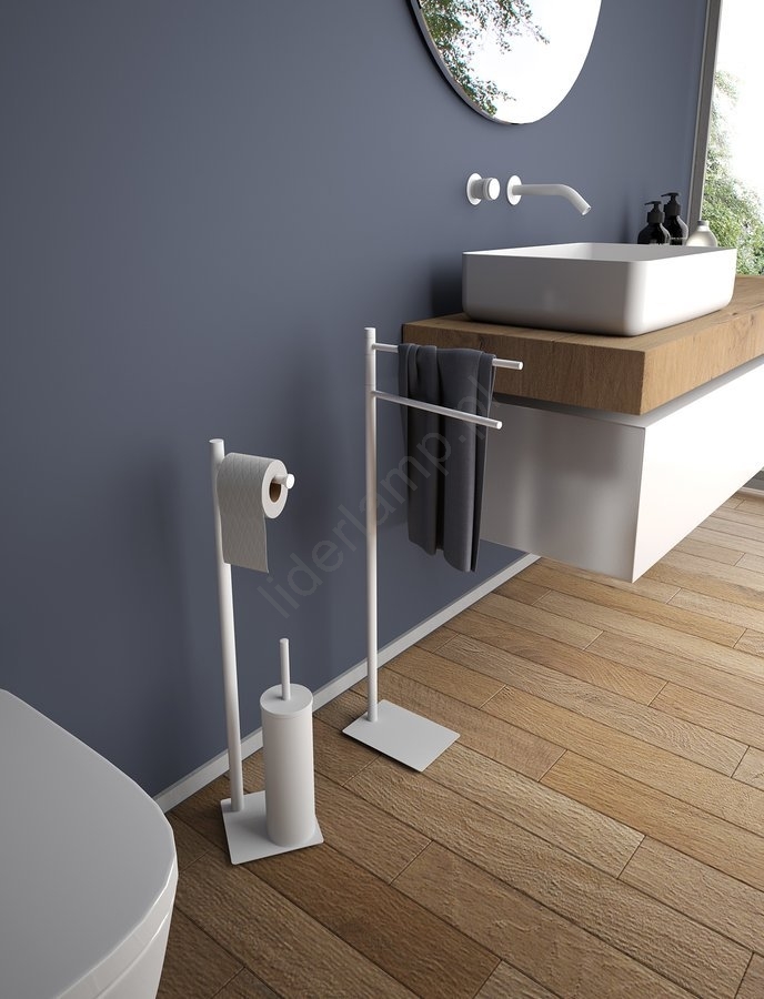 ReviewsWidget_ReviewsAboutUs Gedy - Stojąca szczotka WC z uchwytem na papier toaletowy TRILLY, biały mat | Liderlamp.pl