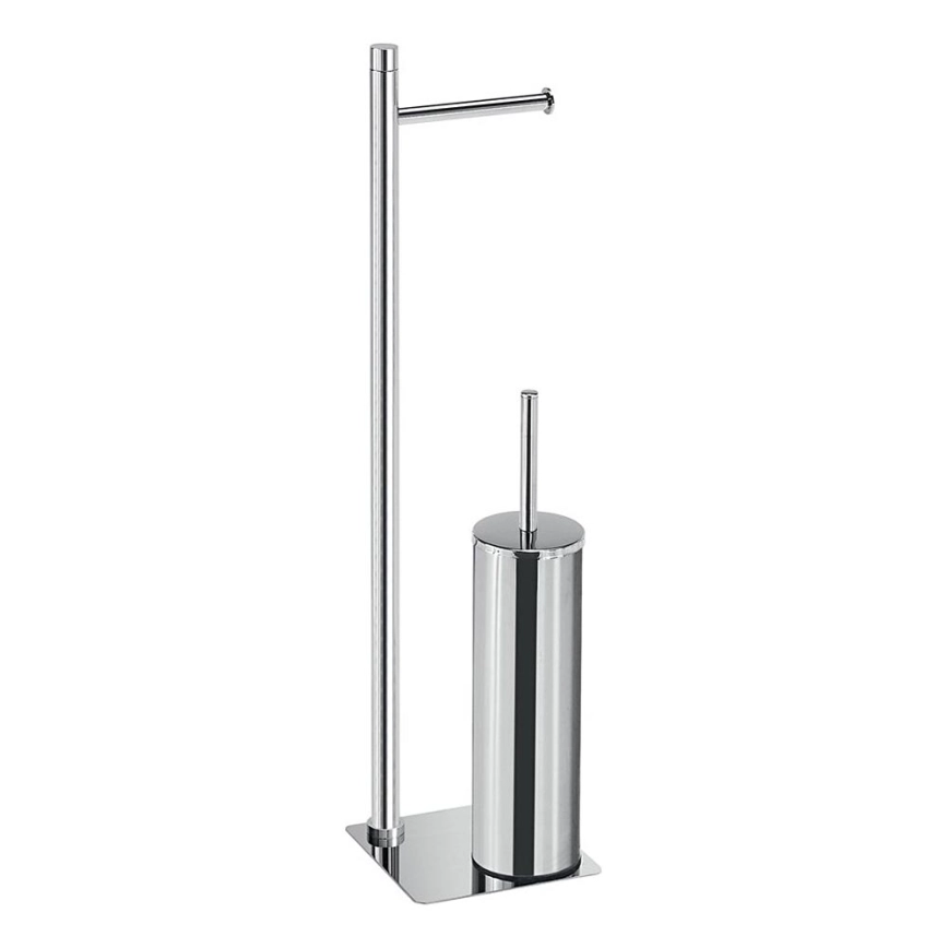 Gedy - stojąca szczotka WC z uchwytem na papier toaletowy TRILLY, chrom błyszczący