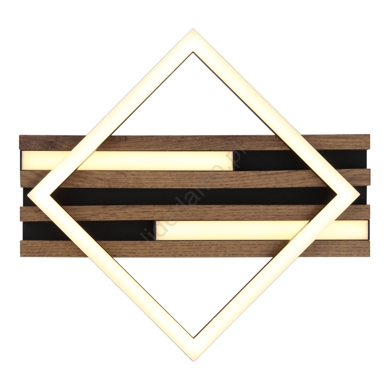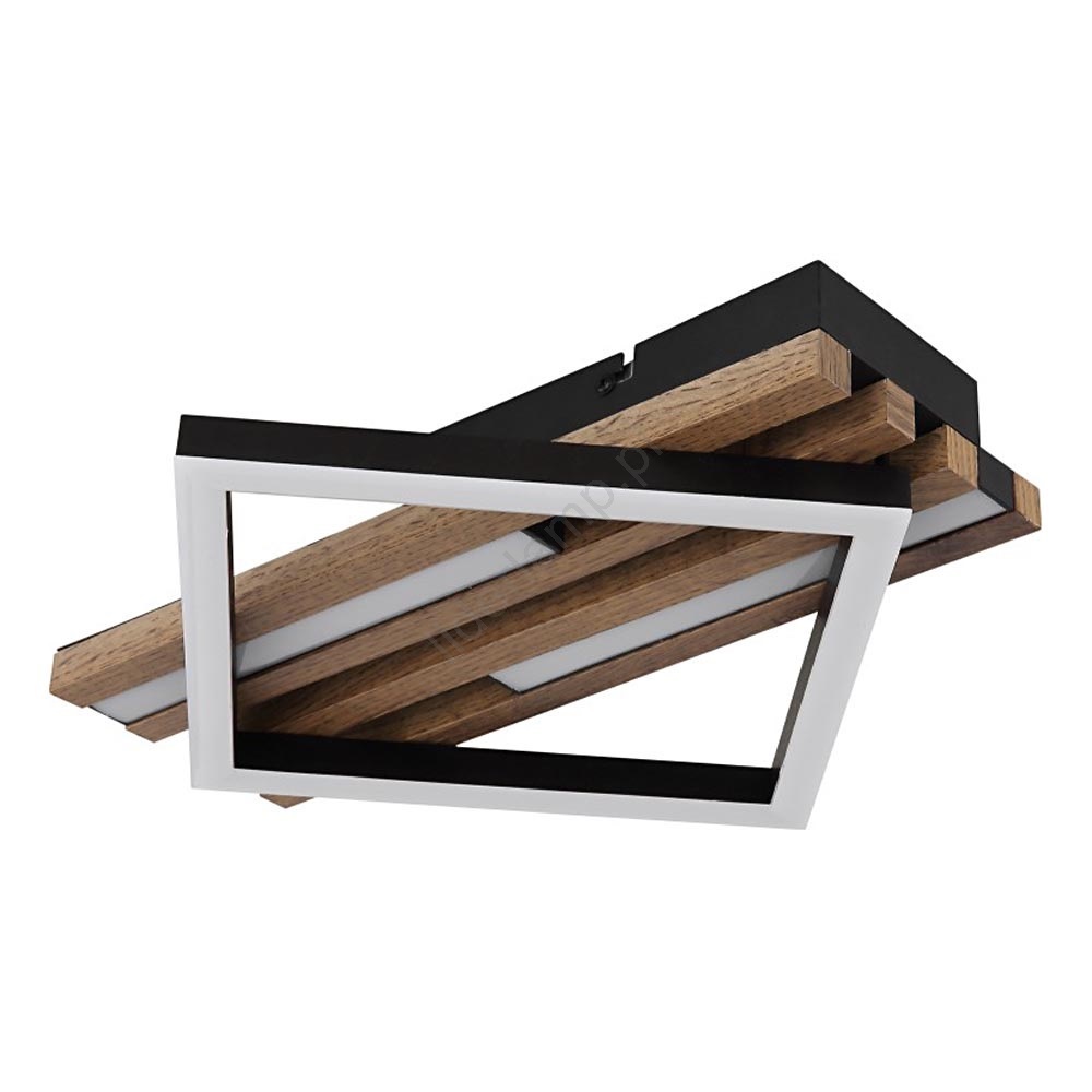 • Kształt z czarną ramą, uzupełniony płytą MDF z imitacją ciemnego drewna oraz mlecznym plastikowym kloszem.