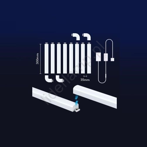 • Zawartość opakowania: 6x panel świetlny o długości 30 cm, 1x element narożny, 1x jednostka sterująca, 1x zasilacz.