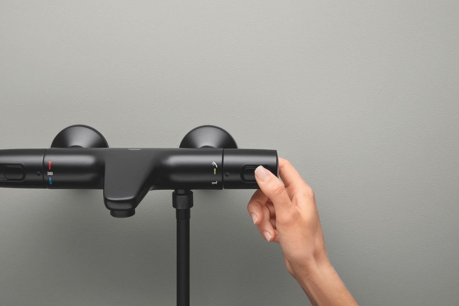 • Funkcja GROHE AquaDimmer Eco umożliwia łatwą regulację przepływu i przełączanie między wanną a prysznicem.