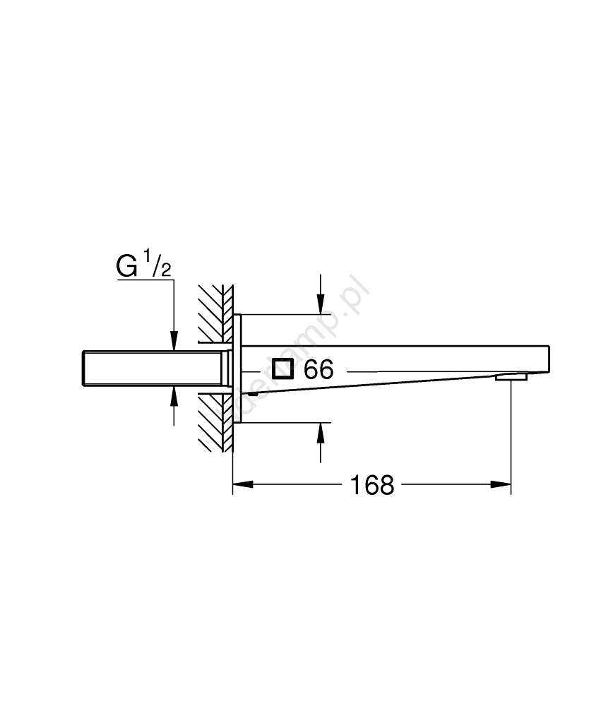 • Zasięg 168 mm zapewniający optymalny dopływ wody do wanny.