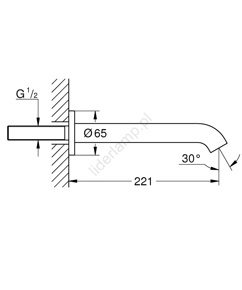 • Długość wylewki 221 mm zapewniająca wygodne napełnianie wanny.