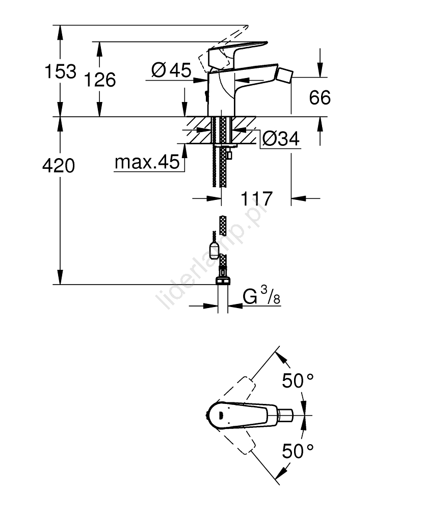 • Technologia GROHE Water Saving zmniejsza zużycie wody do 5 l/min przy 3 barach.