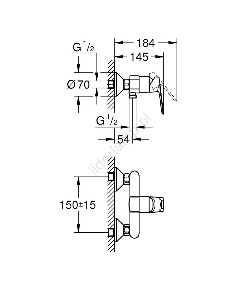 • Ścienna bateria prysznicowa z dźwignią, łatwa instalacja.