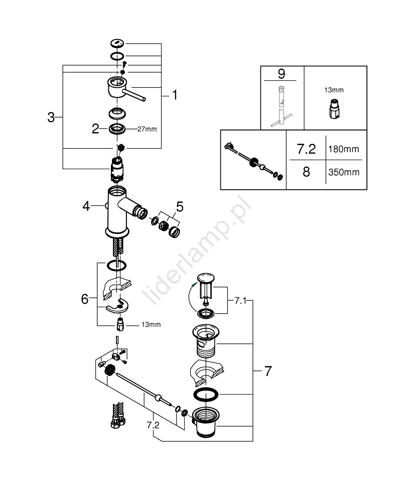 • Zestaw odpływowy 1 1/4“ jest częścią opakowania.