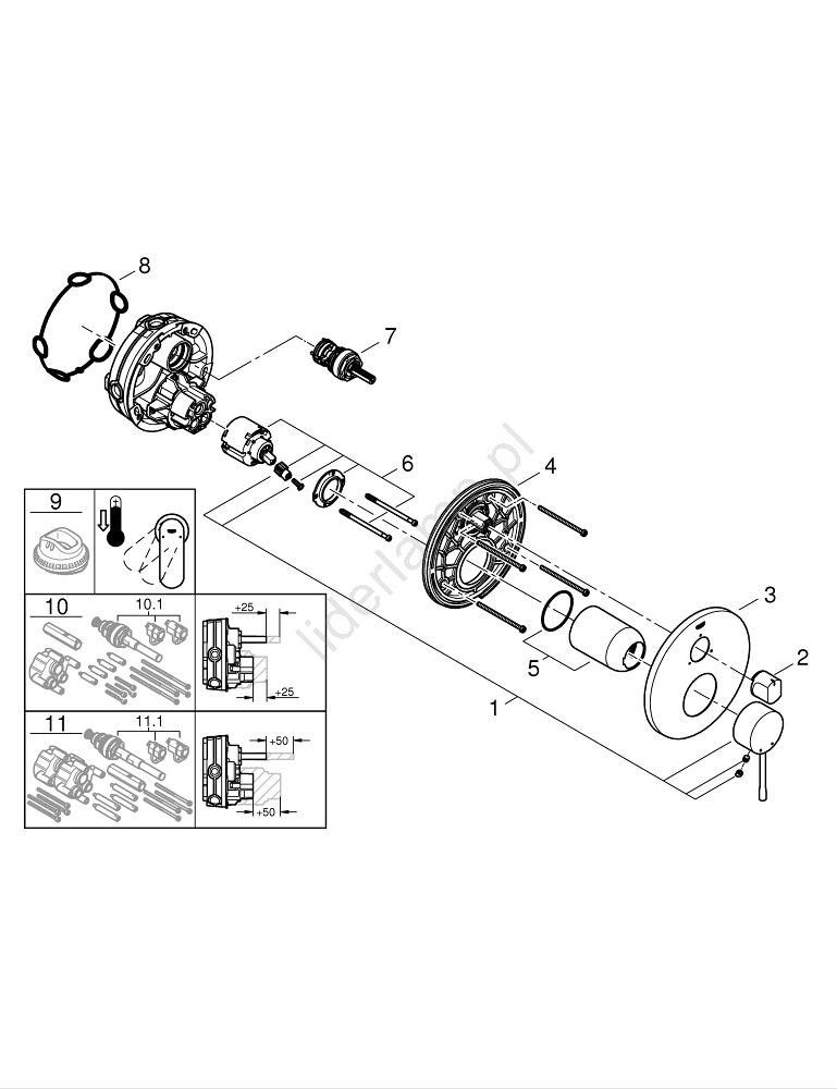 • Wymaga montażu na uniwersalnym korpusie GROHE Rapido SmartBox 35600000 (nie jest częścią zestawu).