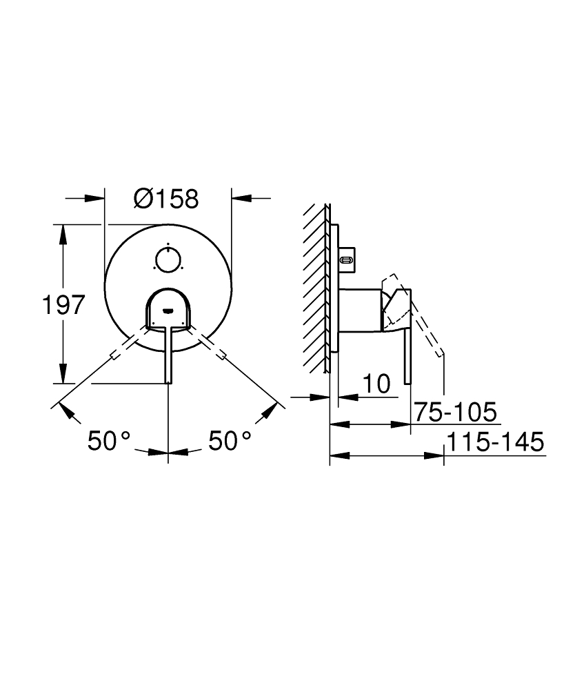 • Bez zestawu montażowego – należy dokupić element podtynkowy oddzielnie.