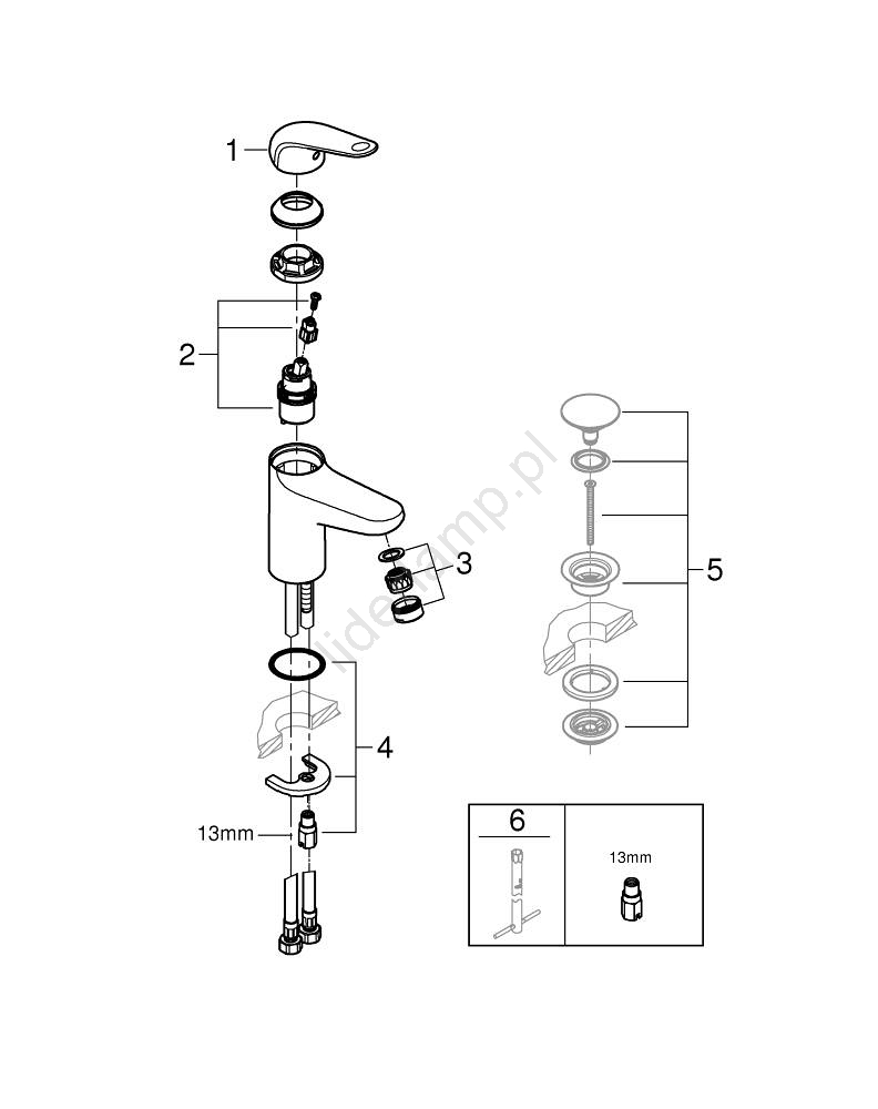 • GROHE QuickTool w komplecie dla wygodnego montażu.