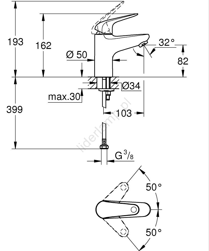 • Przyłącze G3/8 do standardowej instalacji.