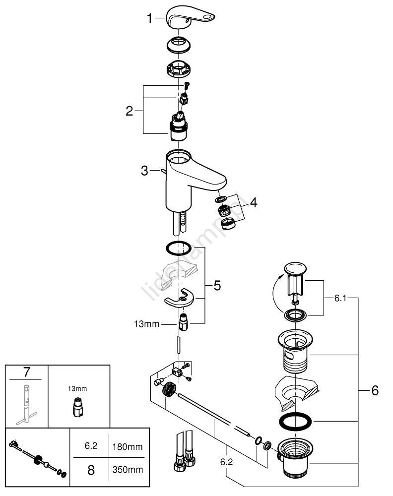 • W zestawie znajduje się narzędzie GROHE QuickTool ułatwiające montaż.