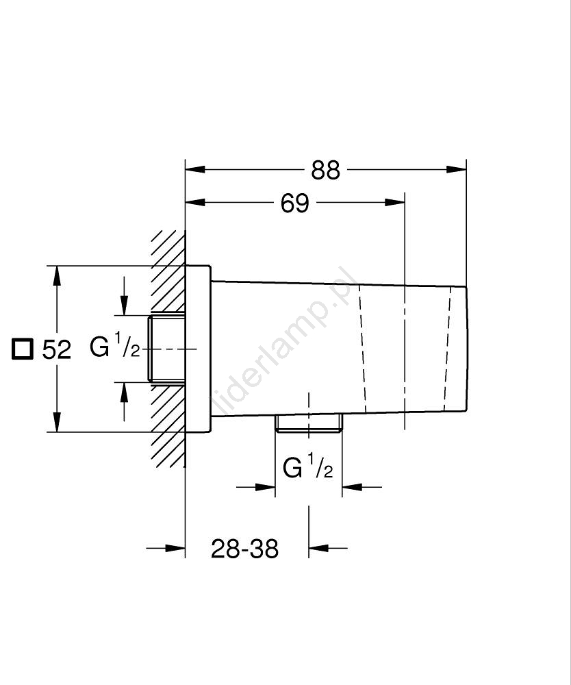 • Kolanko ścienne z zintegrowanym uchwytem na słuchawkę prysznicową — eleganckie i funkcjonalne rozwiązanie.