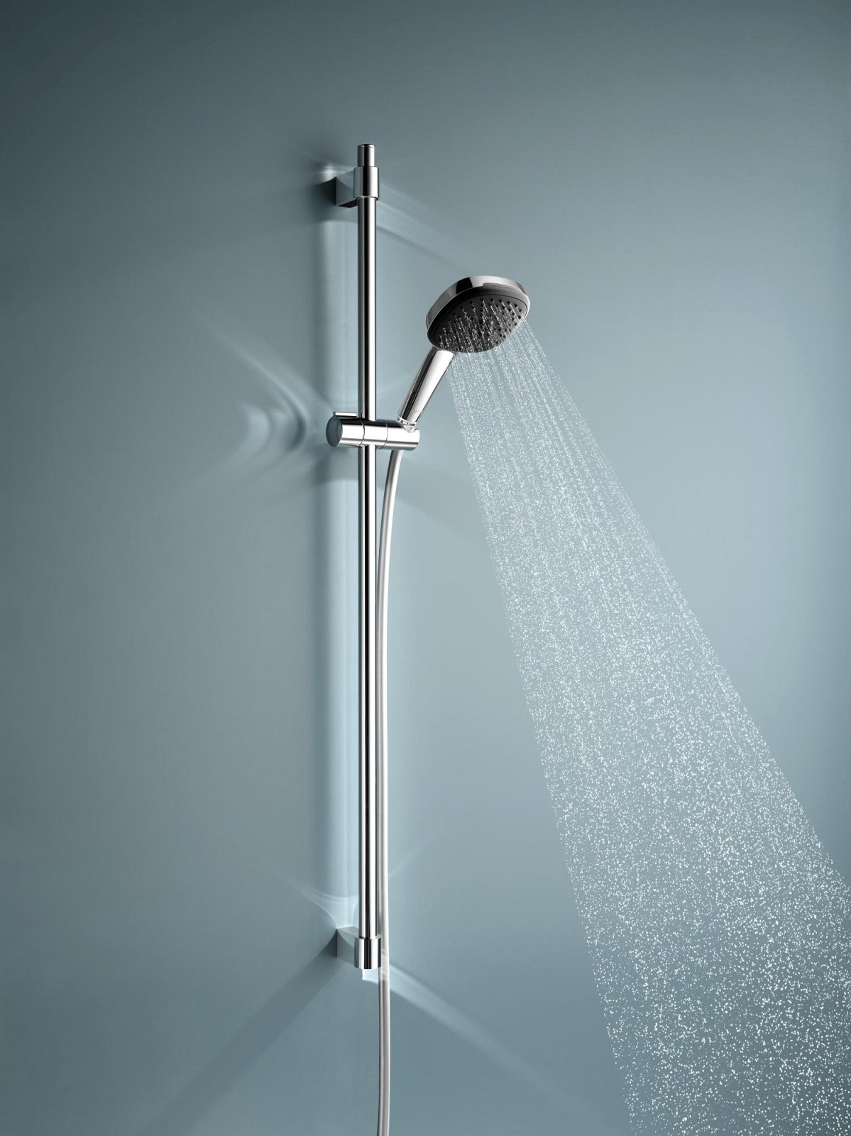 • Regulowany uchwyt przesuwny umożliwia wygodne ustawienie wysokości słuchawki prysznicowej.
