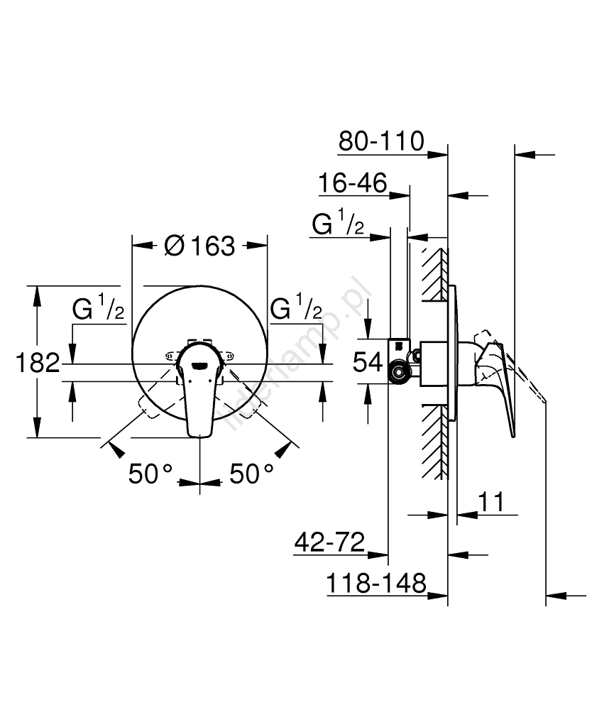 • Montaż podtynkowy dla czystego i eleganckiego wyglądu łazienki.
