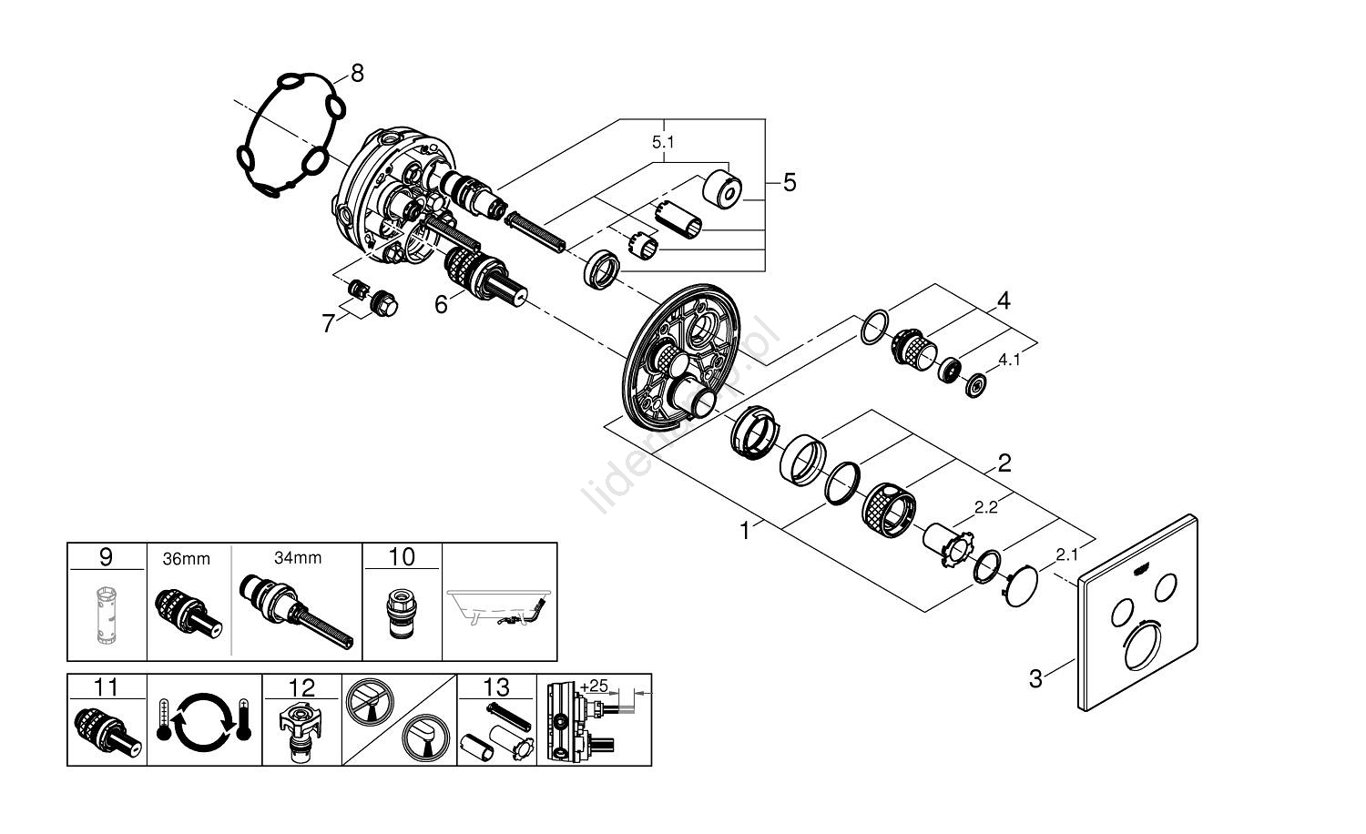 • Kompatybilny z podtynkowym korpusem GROHE Rapido SmartBox (35 600/35 604).