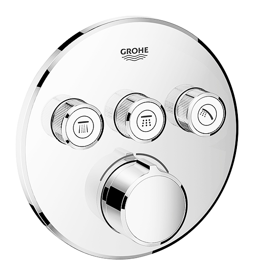• Intuicyjne sterowanie za pomocą systemu GROHE SmartControl: naciśnięciem przycisku włączysz/wyłączysz wodę, obrotem ustawisz przepływ od trybu oszczędnego aż po pełny strumień.