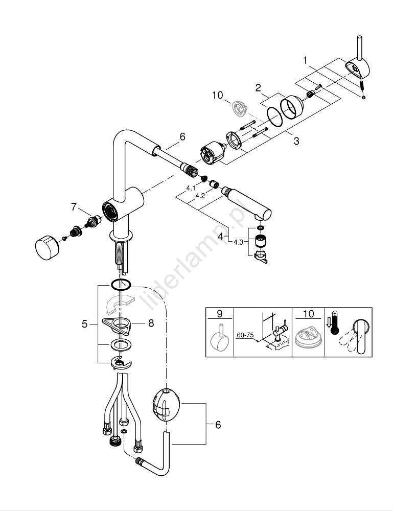 • Trwałe wykończenie GROHE Long-Life zapewnia długą żywotność i łatwą konserwację.