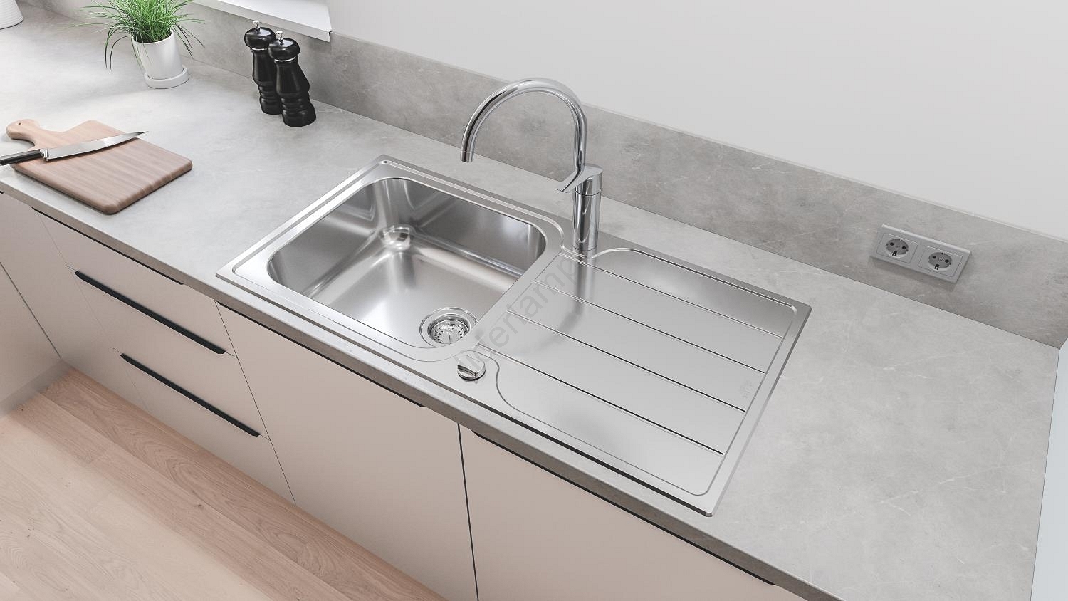 • Wymiary zlewu 1000 x 500 mm, komora 450 x 400 x 180 mm zapewniają wystarczającą przestrzeń do mycia naczyń.