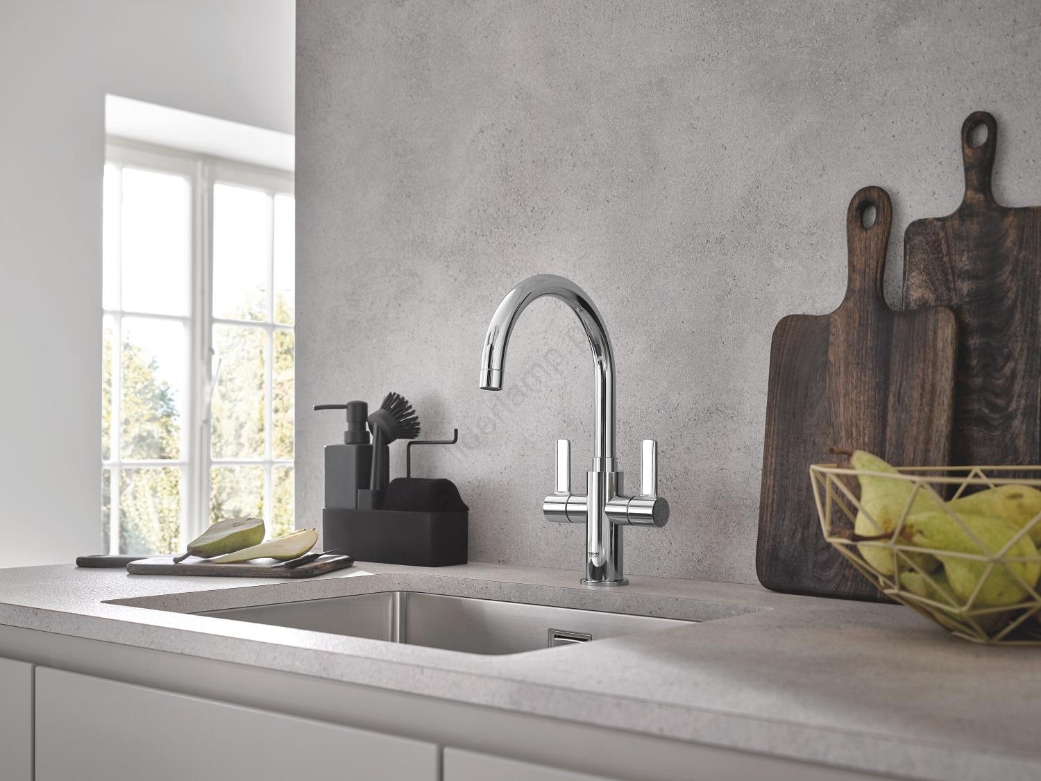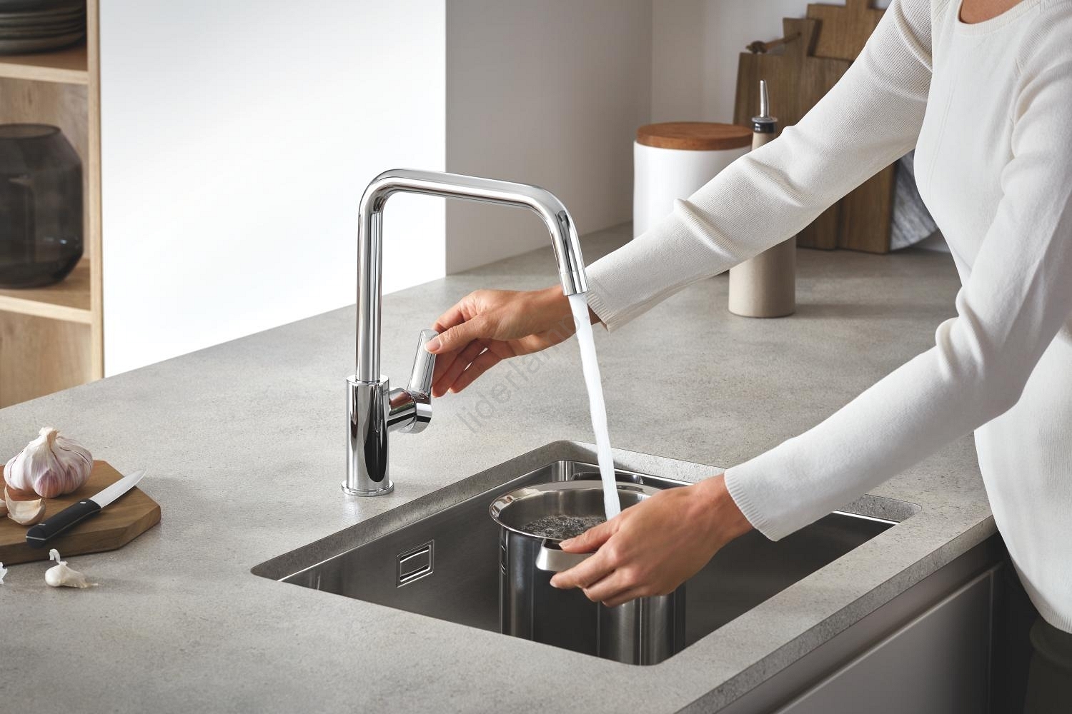 • Zlew kuchenny ze stali nierdzewnej GROHE K700U łączy nowoczesny design z długą żywotnością.