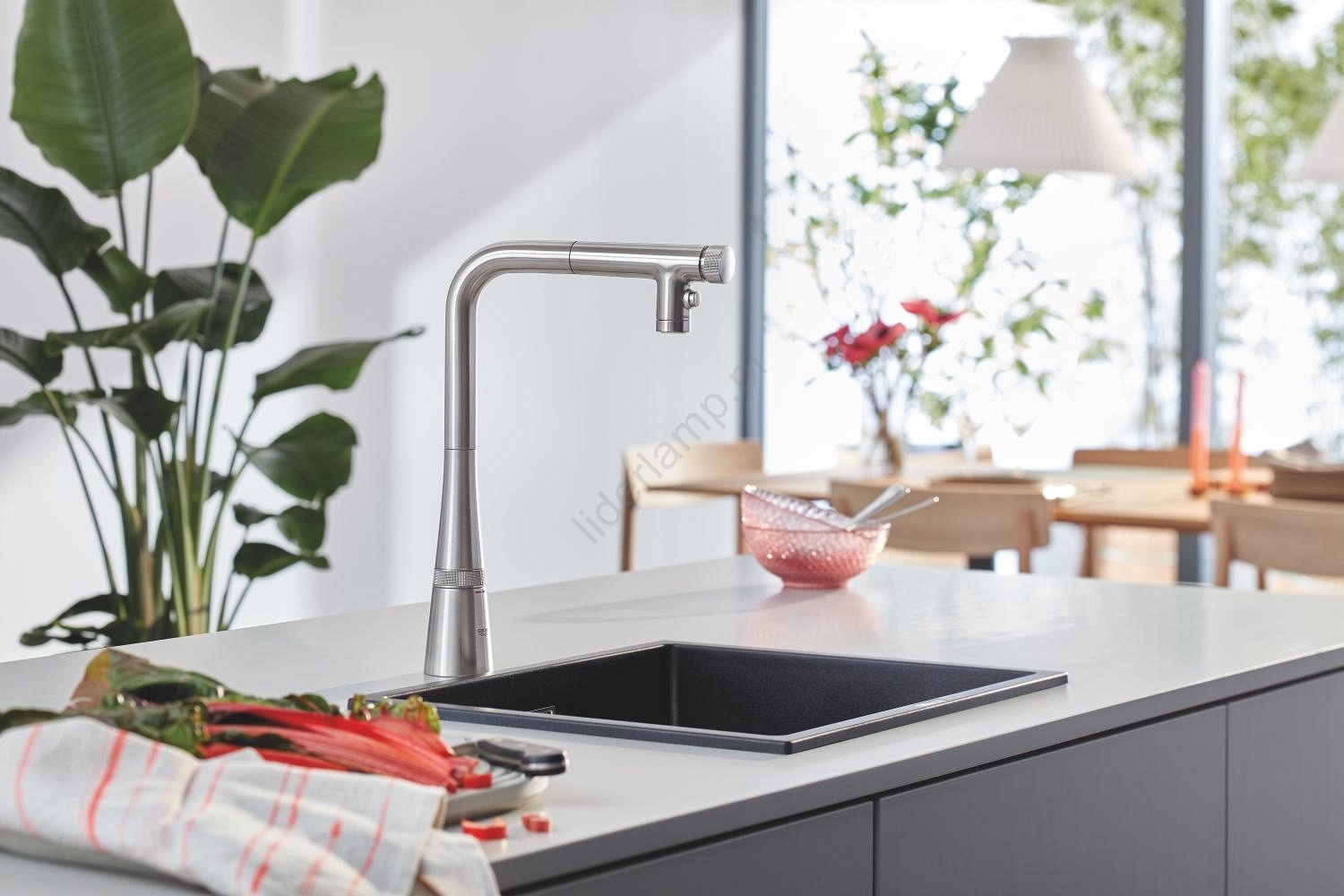 • Nowoczesny zlewozmywak kompozytowy GROHE K700U — eleganckie wykończenie kuchni.