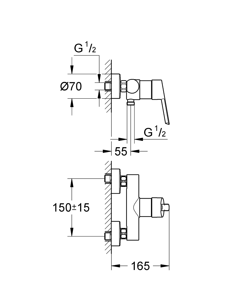 • Ścienna bateria prysznicowa z dźwignią, prosta w montażu.