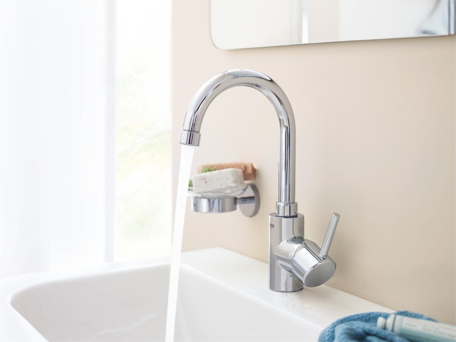 • Bateria umywalkowa jednouchwytowa z wysoką, obrotową wylewką dla maksymalnego komfortu.