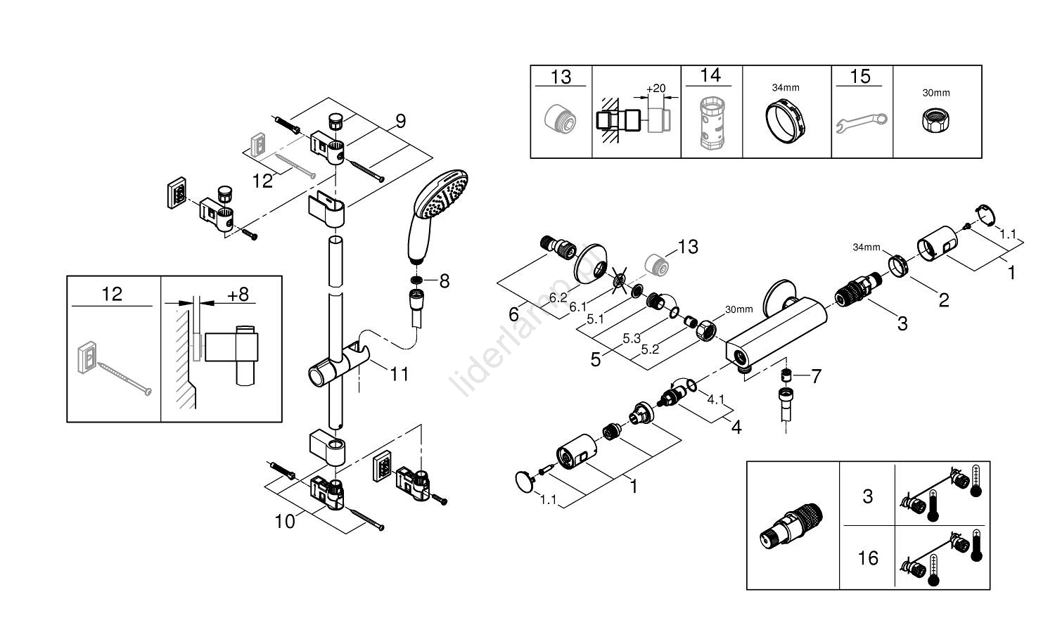 • System GROHE QuickSpanner umożliwia prosty montaż bez użycia dodatkowych narzędzi.
