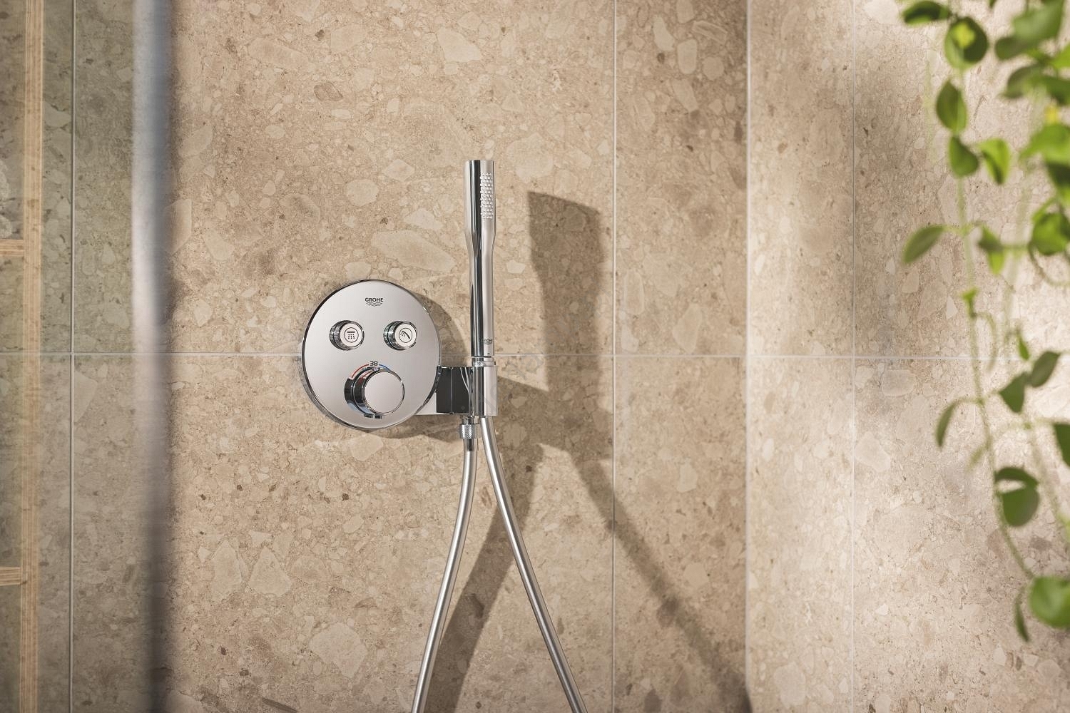 • Funkcja GROHE SmartControl umożliwia łatwe sterowanie prysznicem i regulację przepływu wody.