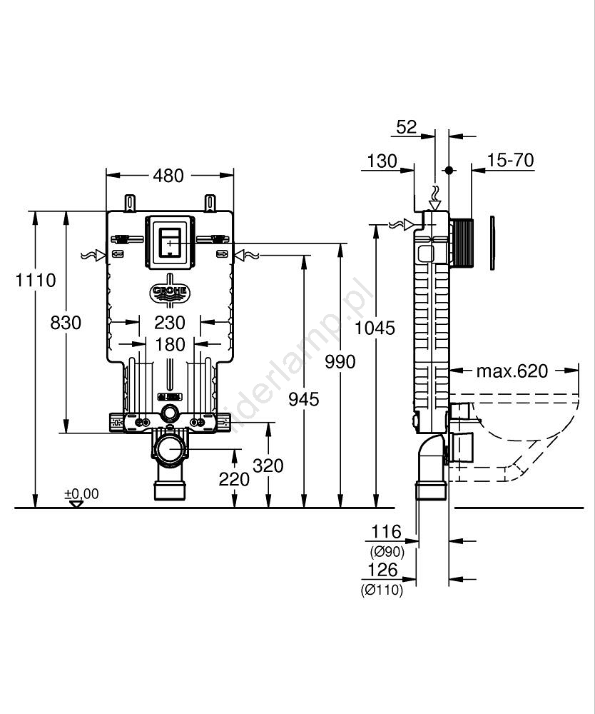 GROHE 38825000 - Podtynkowy element instalacyjny UNISET 830 × 480 × 130 mm, EPS, biały