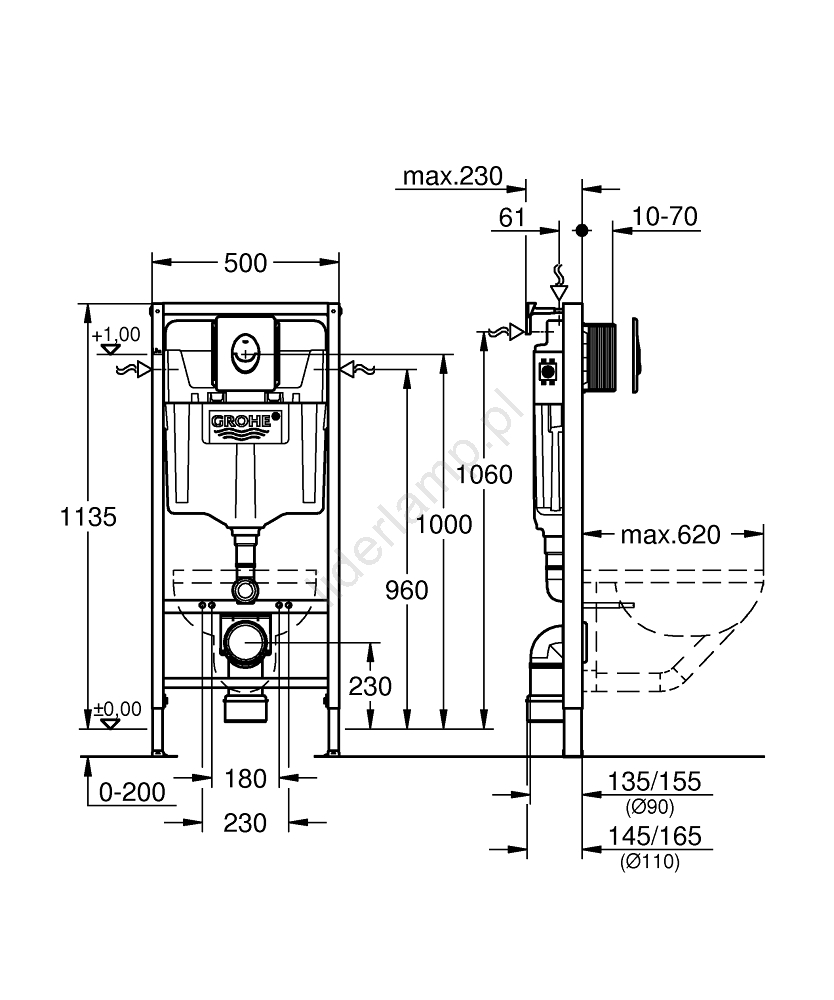 • System instalacyjny GROHE Rapid SL do wiszących misek WC o wysokości 1,13 m.