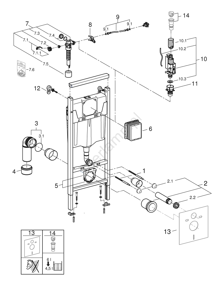 • Do montażu małych przycisków spłukujących należy zamówić komorę rewizyjną 40 911 000 (sprzedawana oddzielnie).