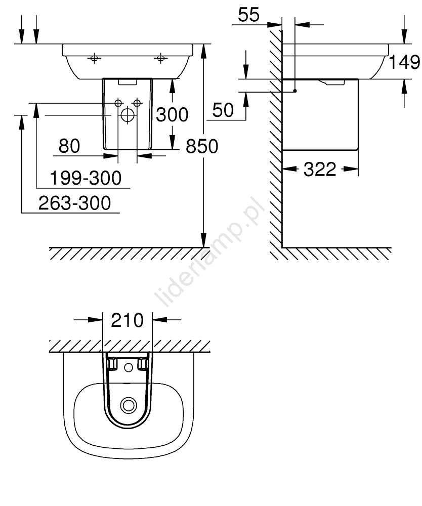 • Wymiary: szerokość 210 mm, głębokość 300 mm, wysokość 322 mm — odpowiedni dla różnych rozmiarów umywalek.