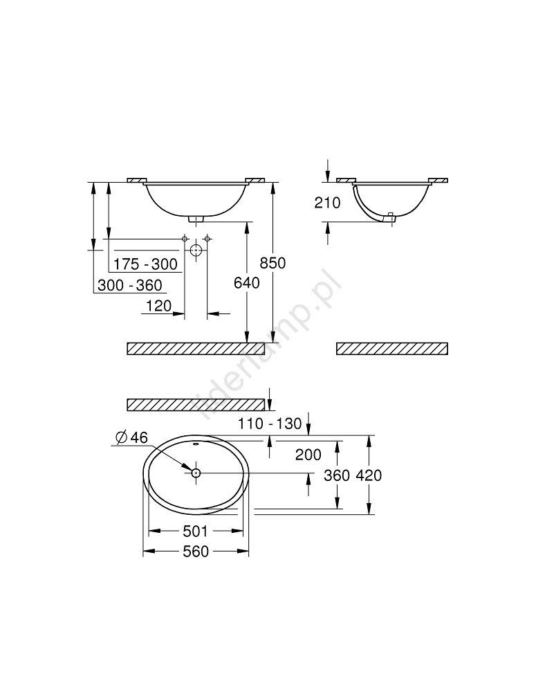 • Umywalka do zabudowy o szerokości 560 mm i głębokości 420 mm, idealna do eleganckiej integracji z meblami łazienkowymi.