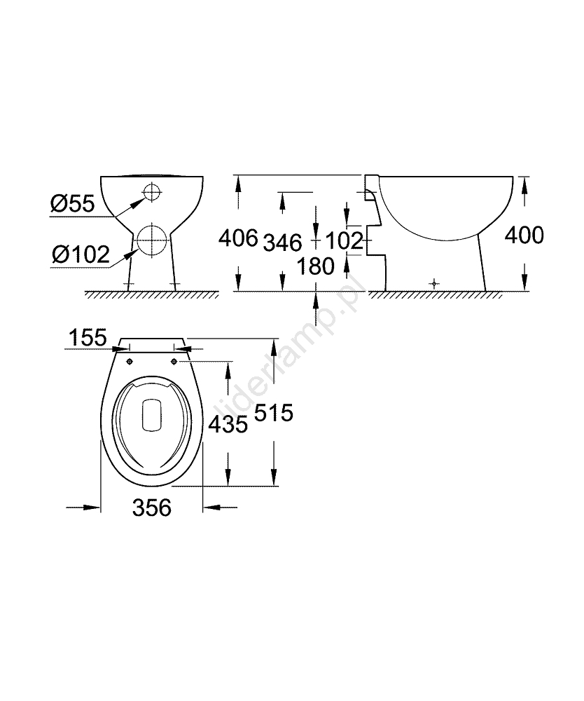 GROHE 39430000 - Miska WC stojąca BAU CERAMIC 515 x 356 x 406 mm ceramika/biała