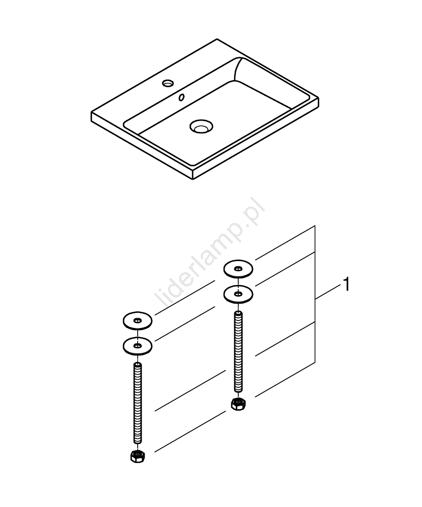 • Umywalka wyposażona jest w jeden wywiercony otwór na baterię oraz dwa wstępnie przygotowane otwory, co zwiększa elastyczność montażu.