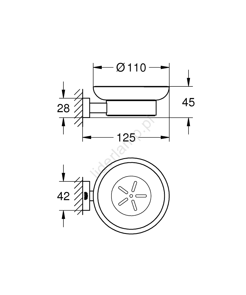 • W zestawie uchwyt (40 508 001) oraz mydelniczka (40 368 001).
