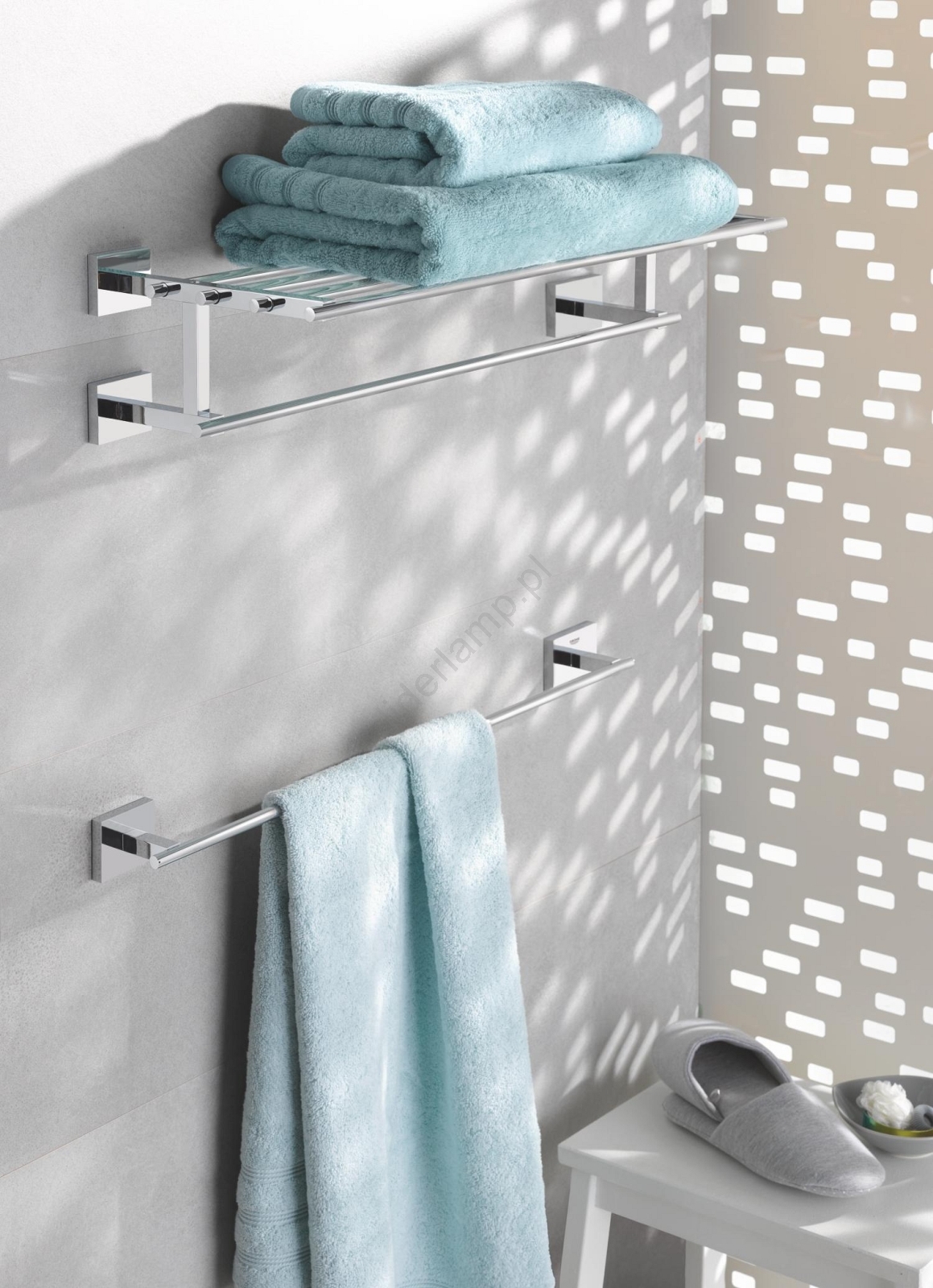• Wielofunkcyjny wieszak na ręczniki GROHE Start Cube łączy styl z funkcjonalnością i doskonale pasuje do twojej łazienki.